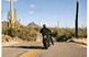 Show Announcement for Artist Olivier Mosset for a show in Bern Switzerland at the Kunsthalle Bern. Olivier hired me to shoot this image for a show back in his home town in Bern Switzerland. He's not really big on having his photo taken so we decided to shoot a shot of him riding his chopper through the desert West of Tucson. You can imagine how dramatically different this is for the Swiss. There is another shot I like better in the portraits gallery.